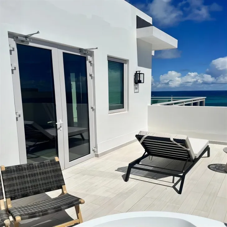 Карактеристике двоструких врата отпорних на ураган укључују аутоматски одскок и контролу приступа према захтевима, топлотну изолацију, отпорност на рад, отпорност на ветар и отпорност на ураган. Минимална обрада површине и изложена инфраструктура смањују трошкове одржавања и поправке. Овај производ се такође може користити у нестамбеним просторима, као што су хотели, предузећа или заједнице, како би се људима пружио потпуни осећај сигурности у различитим јавним просторима (фасада зграде користи стаклене заштитне ограде, прозори и врата су део нашег хотелски пројекат на Барбадосу).